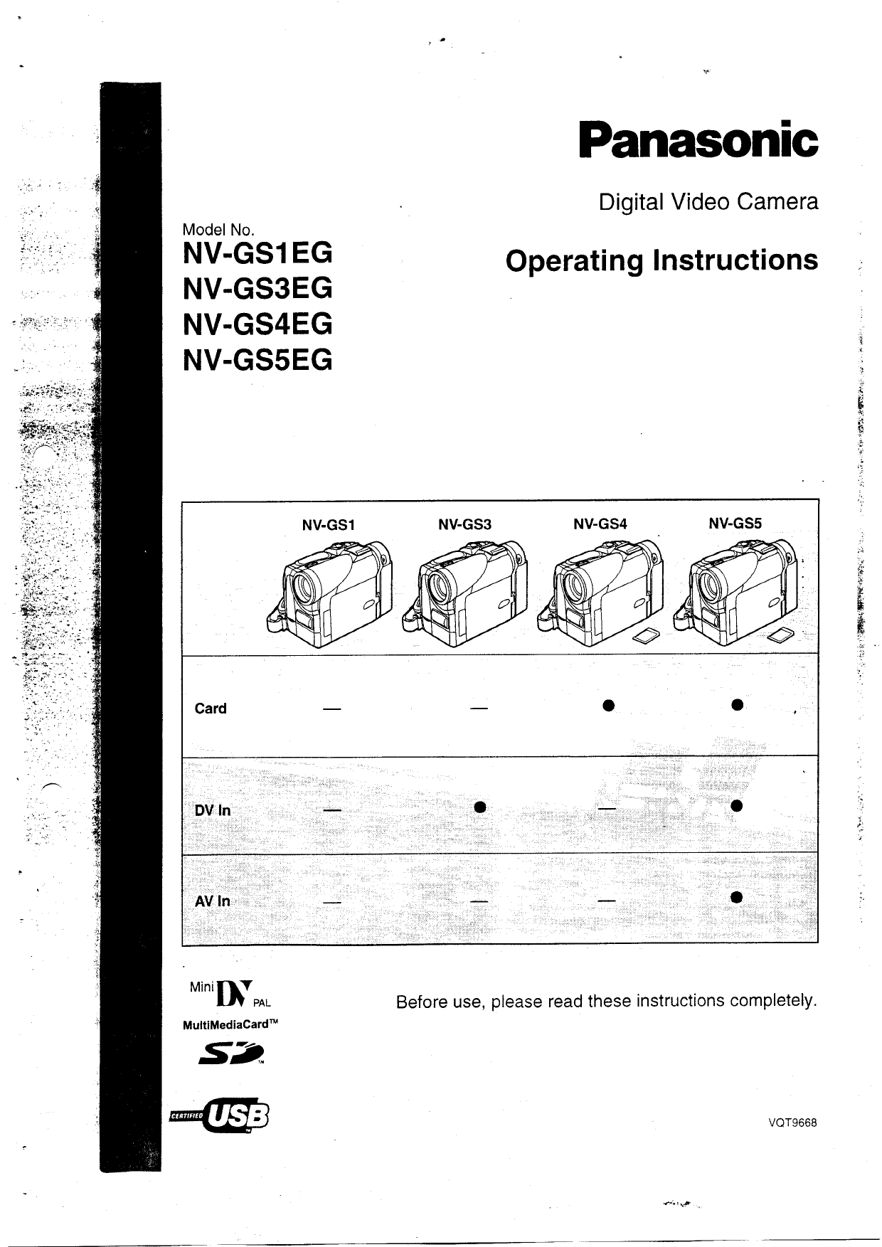 Panasonic Nvgs1 Operating Instructions Manualzz