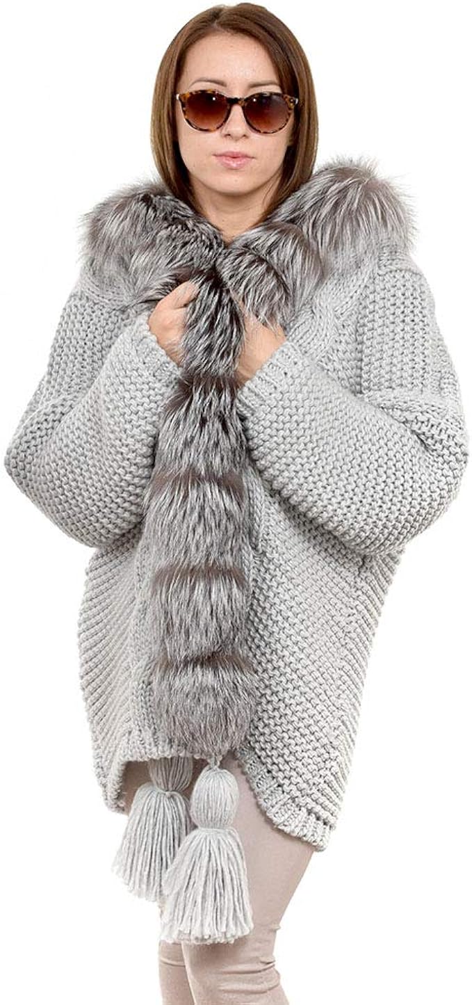 Fox Fashion Grauer Pullover Mit Kragen Und Vorderseite Aus Silberfuchs Fell Fuchs Damenpullover Pelz Echtfell Silber Amazon De Bekleidung