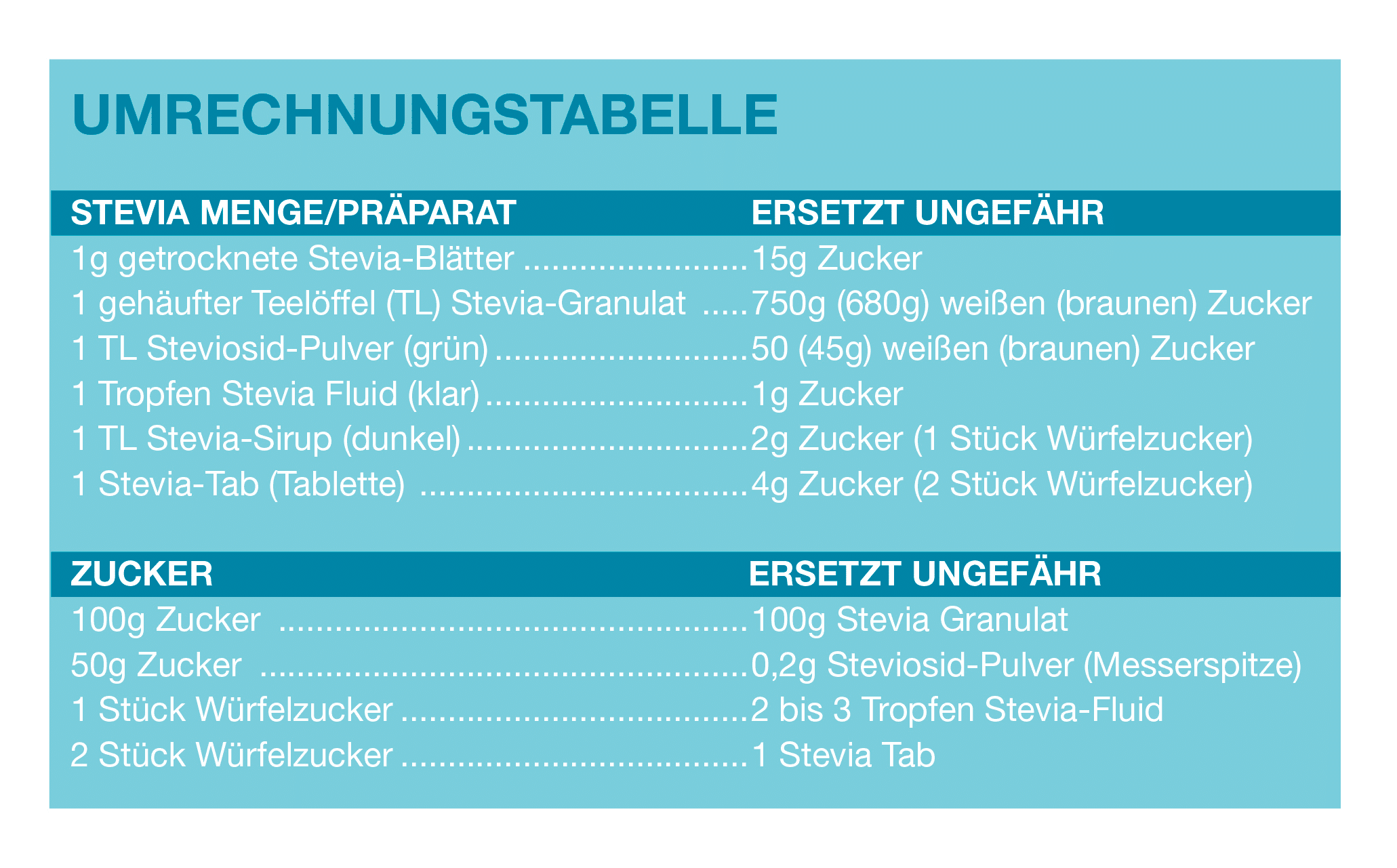 Umrechnung Zucker Stevia