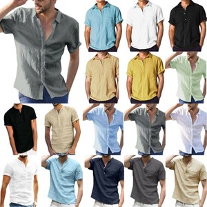 Herren Leinenhemd Kurzarm Knopfhemd Hemd Sommer Freizeithemd Bluse Oberteile Ebay
