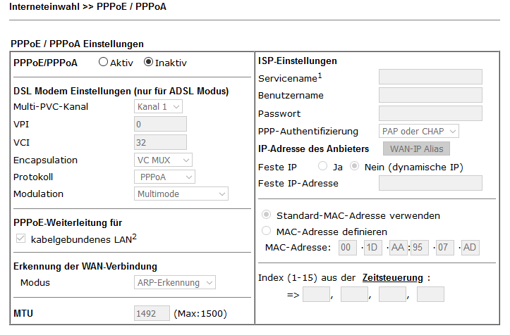Die FRITZ!Box stellt auch an einem AllIP oder IPbasierten Anschluss ihre vielseitigen Leistungsmerkmale zur Verfügung Im FRITZ!. Kunden in NordrheinWestfalen, Hessen und BadenWürttemberg – mit fester IP ab 6617 Für Kunden in NordrheinWestfalen, Hessen und Kunden in BadenWürttemberg, die ab dem 6Juni 17 zum ersten Mal feste IPAdressen beantragt haben Ihre feste IPAdresse richten Sie an Ihrem KabelModem oder Router selbst vorWeitere Infos dazu finden Sie in den Unterlagen, die Sie von uns bekommen. Ppp chap hostname festeipX/benutzername@tonlinecomde ppp chap password 0 ppp pap sentusername festeipX/benutzername@tonlinecomde password 0 Depending on the connection (VDSL, BNG) it may be necessary to set a VLAN at the WAN interface interface Ethernet07 encapsulation dot1Q 7 pppoe enable pppoeclient dialpool.