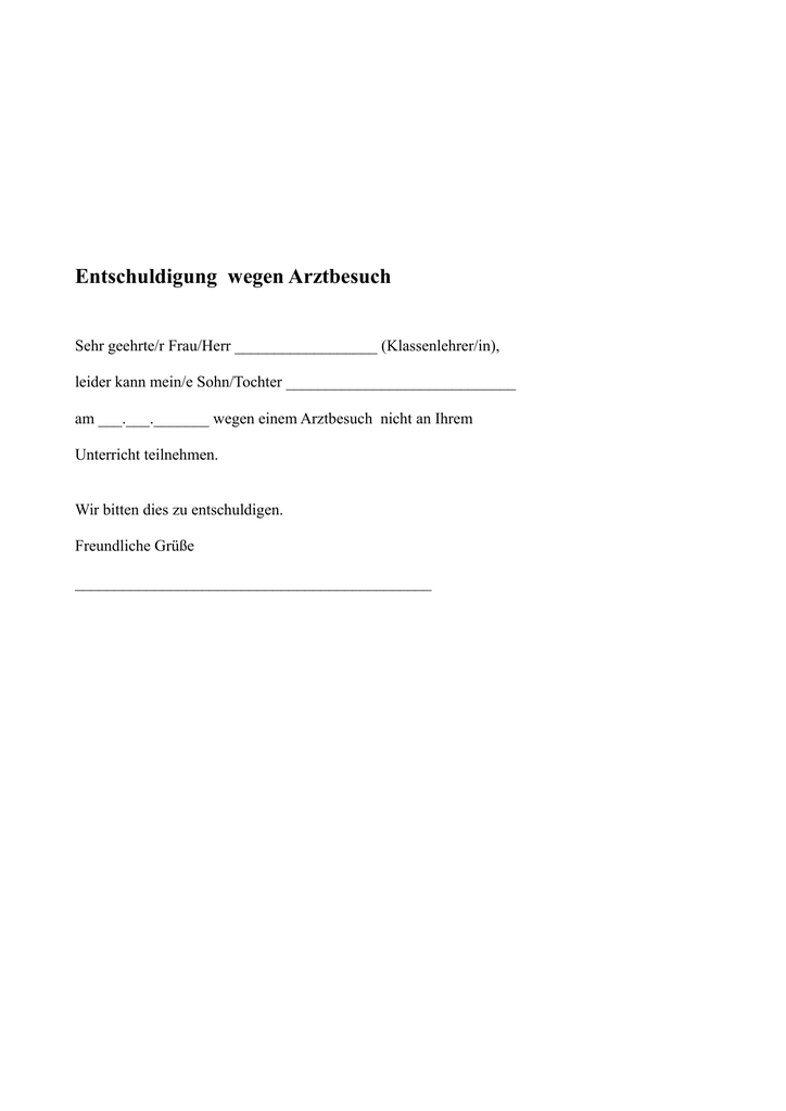 Vorlagen entschuldigung fur schule wegen arzttermin muster. In Deutschland herrscht Schulpflicht Je nach Bundesland müssen Kinder die Schule bis zum Ende der neunten oder zehnten Klasse besuchen Doch natürlich kann es sein, dass das Kind einmal krank ist oder dem Unterricht aufgrund eines wichtigen Termins fernbleiben muss In diesem Fall müssen die Eltern eine Entschuldigung für die Schule schreiben, die das Kind dort abgeben muss Die passende. Vorlage „Entschuldigung für die Schule“ Download kostenlos Entschuldigung wegen Arzttermin • Entschuldigung für die Entschuldigungen für die Schule Archive • ABC Wichte Entschuldigung, Sportunterricht Entschuldigung für die Schule wegen Krankheit • Vorlagen und. Entschuldigung Schule Vorlage Arzttermin Idee Inhaltsverzeichnis Entschuldigung Berufsschule Vorlage muster und sie suchen nach einem muster für eine entschuldigung für berufsschule wenn dem so ist dann werden sie in sem artikel mit sicherheit fündig werden denn hier haben wir einige vorlagen für sie erstellt entschuldigung für.