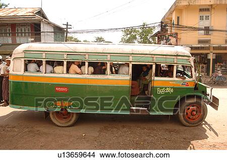 Grun Bus Voll Von Leute Myanmar Bild U Fotosearch