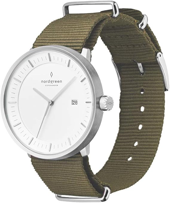 Nordgreen Philosopher Skandinavische Herrenuhr In Silber Mit Weissem Ziffernblatt Und Austauschbarem 40mm Nylon Armband Boheme Grun Amazon De Uhren