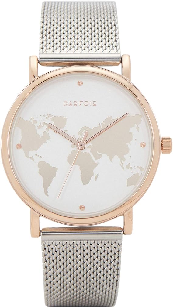 Parfois Uhr Mit Stahlarmband Und Zifferblatt Mit Weltkarte Damen Grosse One Size Silber Amazon De Uhren