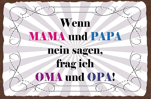 Amazon Com Schatzmix Blechschild Wenn Mama Und Papa Nein Sagen Frage Ich Metallschild x30 Deko Tin Plate Sign x30 Cm Multicoloured Home Kitchen