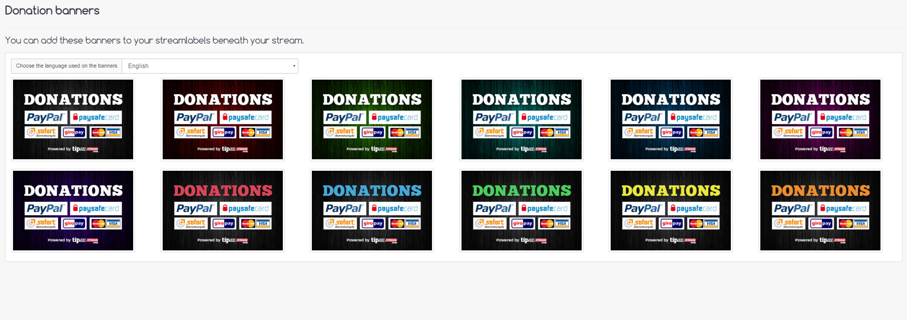 Tipeeestream We Added Donation Banners To The Streamer Experience That Can Be Used For Your Stream Labels Different Languages T Co H71jg5boit