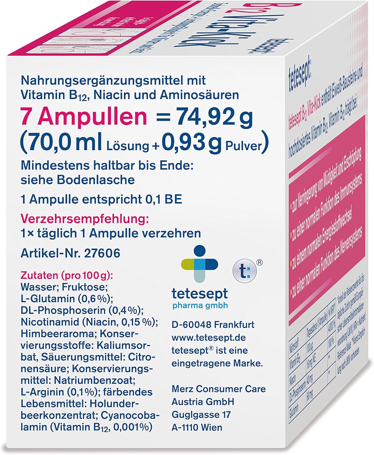 Tetesept B12 Vita Kick Trinkampullen Erganzungsmittel Mit Hochdosiertem Vitamin B12 Eiweissbausteinen Himbeergeschmack 1er Pack Mit 7 Trinkflaschchen Nahrungserganzungsmittel Amazon De Drogerie Korperpflege