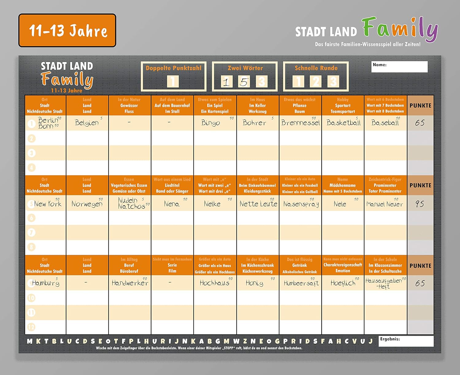 Vor genau 100 Jahren. Wir haben lustige und abwechslungsreiche Kategorien des Kultspiels für dich, von denen du mit Sicherheit noch nicht gehört hast. Die neuen Kategorien können auch durch die Alten ersetzt werden, das Spiel könnte dann App, Ding, Zahl heißen anstatt Stadt, Land, Fluss.