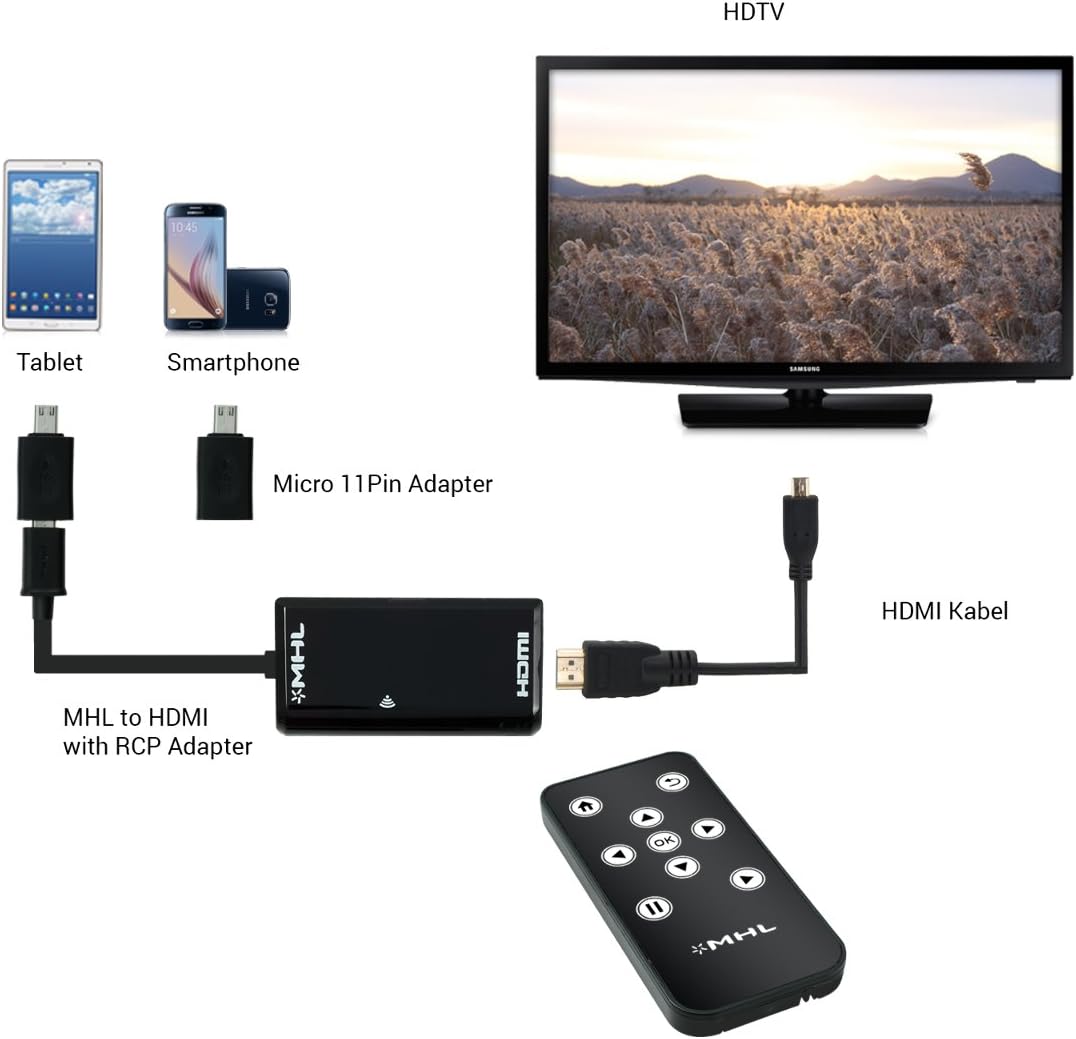 Die MHLVerbindung basiert auf einem StandardHDMIKabel Ein kleiner und praktischer MHLAdapter, dank dem ein Handy oder Tablet mit einem Fernseher oder Bildschirm verbunden werden kann, ist bereits von etwa 8 EUR erhältlich Für den Anschluss sind auch ein HDMIKabel und ein MicroUSBKabel erforderlich Das von einem Mobilgerät. Mobile HighDefinition Link (MHL) is an industry standard for a mobile audio/video interface that allows the connection of smartphones, tablets, and other portable consumer electronics devices to highdefinition televisions (HDTVs), audio receivers, and projectors The standard was designed to share existing mobile device connectors, such as MicroUSB, and avoid the need to add additional. Praktisch wäre es, wenn man ein Video auf den Fernseher beamen könnte Mit neuen Smartphones und Tablets lässt sich das jetzt bewerkstelligen dank des Standards Mobile High Definition Link (MHL).