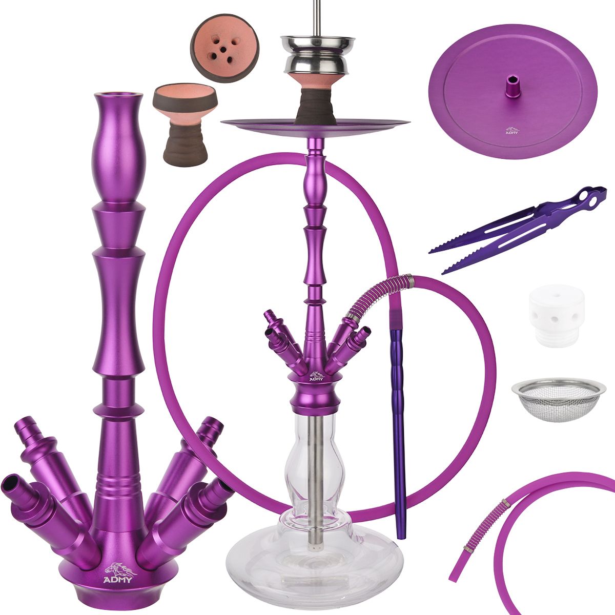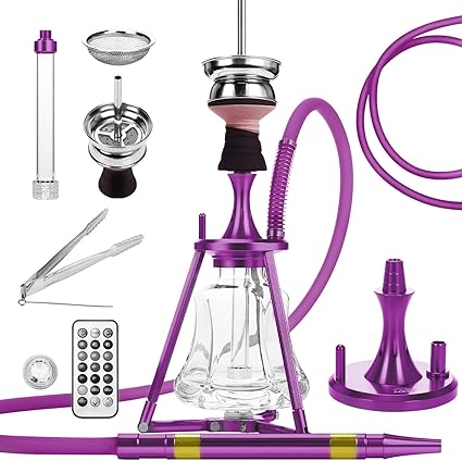 Admy Hookah Aluminium Shisha Set 45 Cm Led Licht 45 Locher Diffusor Aus Glas Kaminkopf Wasserpfeife Molassefanger Mundstuck Silikonschlauch Komplettset Violett Amazon De Kuche Haushalt