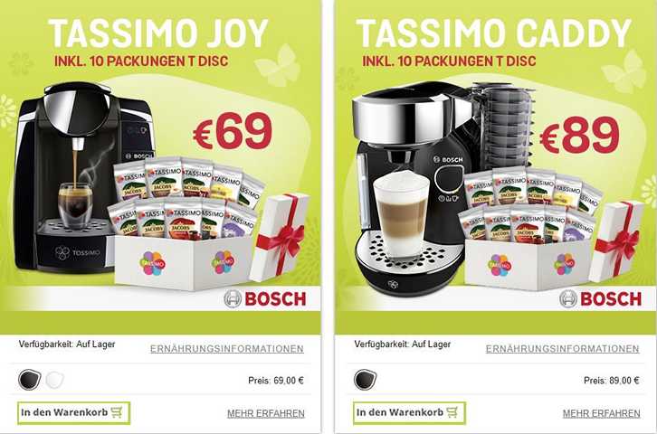 Hunderte Euro für Kapseln Wer einen Kapselautomaten kauft, legt sich auf bestimmte Kaffeekapseln fest In die TassimoMaschine von Bosch passen nur TassimoDöschenGerät und Kapsel bilden eine Einheit, an die sich der Käufer langfristig bindet – und die schnell ins Geld gehen kann Die bei Tassimo als Discs bezeichneten Kapseln kosten um die 30 Cent pro Stück. TASSIMO Produkte im Angebot bei Lidl ☝ Kaffeegenuss zum kleinen Preis Jetzt bei Lidl entdecken!. BOSCH Kapselmaschine Tassimo Suny Schwarz ist etwas kleiner als der Vorgänger den ich hatte, aber wesentlich leiser und schneller Kaffee schmeckt auch ein deut besser Leider ist auch der Wassertank kleiner Preis ist OK es müßten nur noch die Kapseln billiger werden dann wäre es perfekt.