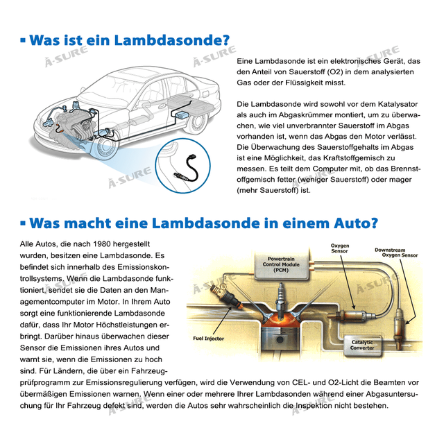 Mit Hilfe der Lambdasonde errechnet die Motorelektronik den Sauerstoffanteil im Abgas Der Gemischregler kann so über die Einspritzdauer der Einspritzventile das KraftstoffLuftVerhältnis zur Verbrennung optimal einstellen. BAM 0CPSI KAT was macht die 2Lambdasonde?. Die Lambdasonde (λSonde) vergleicht den Restsauerstoffgehalt im Abgas mit dem Sauerstoffgehalt einer Referenz, meist der momentanen Atmosphärenluft Daraus kann das Verbrennungsluftverhältnis λ (Verhältnis von Verbrennungsluft zu Kraftstoff) bestimmt und damit eingestellt werden Es werden zwei Messprinzipien verwendet Spannung eines Festkörperelektrolyten (Nernstsonde) und.