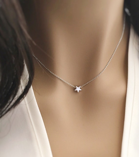 Tiny Star Necklace Silver Rose Gold Or 16k Gold Dainty Etsy