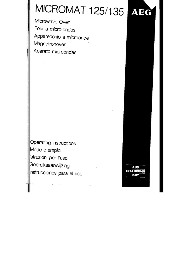 Aeg 125 Microwave Oven User Manual Manualzz