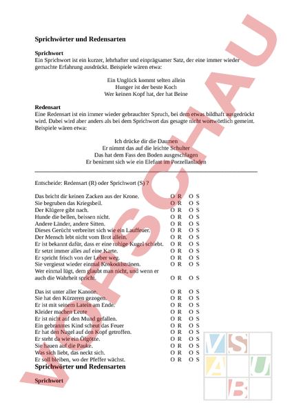 Arbeitsblatt Sprichworter Oder Redensart Deutsch Anderes Thema