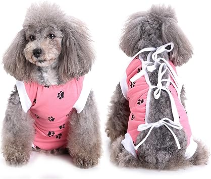 Selmai Body Fur Hunde Nach Op Medical Pet Shirt Katze Hund Kastration E Kragen Alternative Tragen Fur Hautkrankheiten Wunden Chirurgische Versorgung Haustier Verhindern Lecken Pfotenmuster Rosa Xs Amazon De Haustier