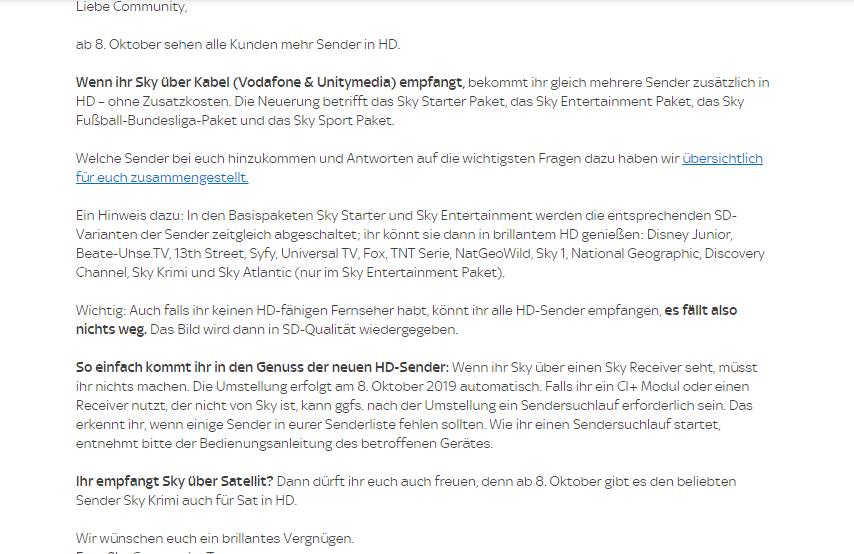 Sky Schaltet 14 Sd Sender Ab Hd Empfang Kunftig Ohne Aufpreis