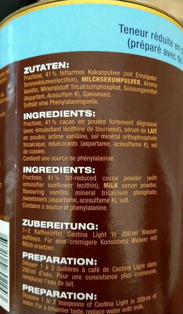 Product Caotina Ligth Pure Sensation The Open Food Repo
