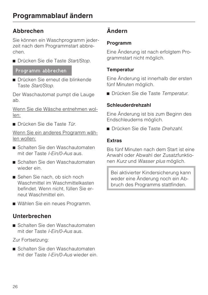 Bedienungsanleitung Miele W 0 Seite 42 Von 48 Deutsch