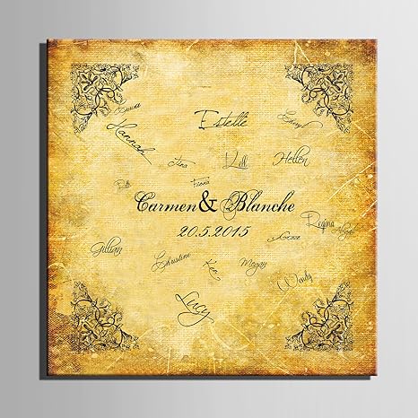 Individuelle Anpassung Die Gaste Unterschrift Party Geschenk Hochzeit Leinwand Unterzeichnung Bord Leinwand Malerei Gelb Retro Muster Hochzeit Dekoration Hochzeit Uberrascht Signatur Gemalde 60x60cmx1pc Amazon De Kuche Haushalt