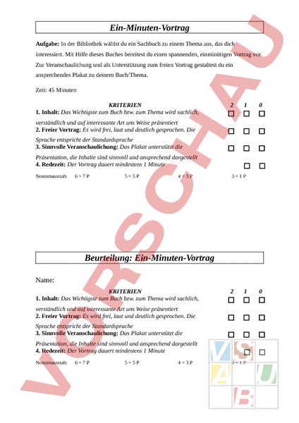 Arbeitsblatt Freies Sprechen Ein Minuten Vortrag Deutsch Vorlesen Vortragen Erzahlen