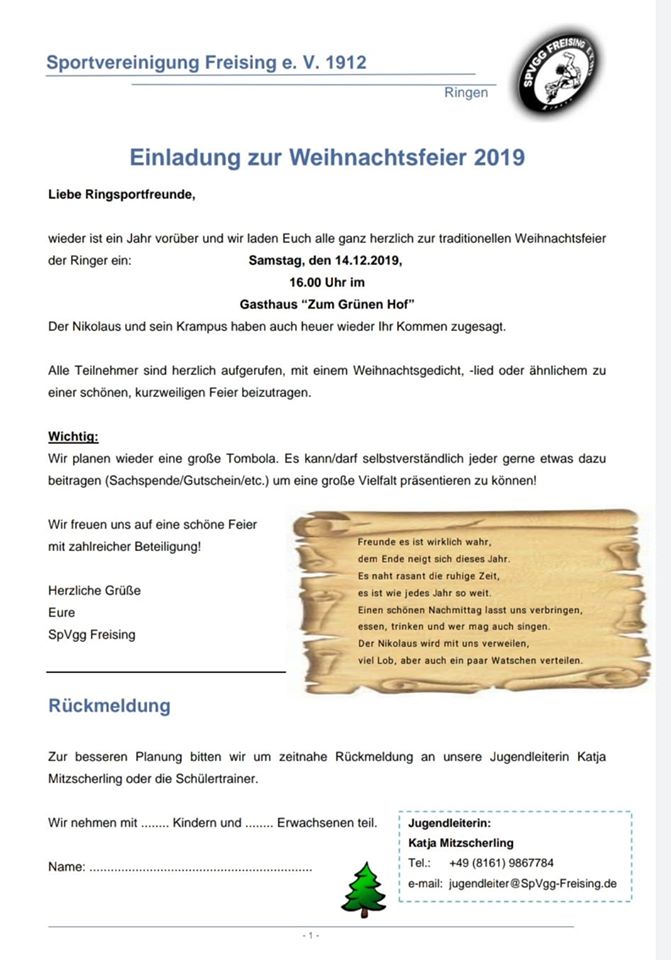 Einladung Zur Weihnachtsfeier 19 Spvgg Freising