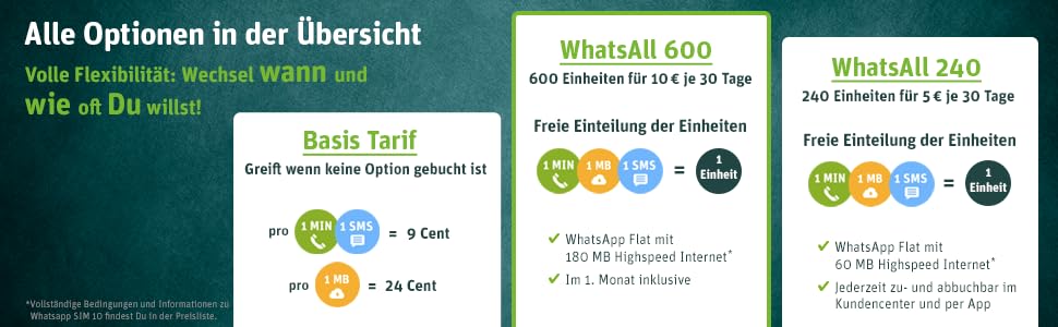 Tarif Und Optionen Infos Zu Deinem Prepaid Tarif Whatsapp Sim