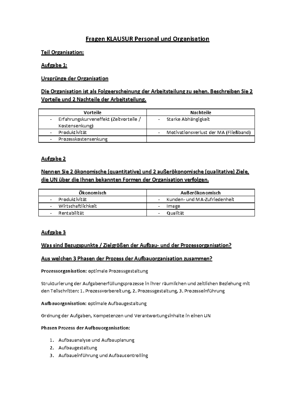 Personal Und Organisation Fragenkatalog Mit Losungen Studocu