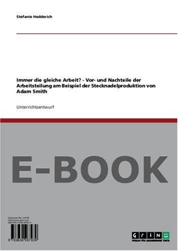 Immer Die Gleiche Arbeit Vor Und Nachteile Der Arbeitsteilung Am Beispiel Der Stecknadelproduktion Von Adam Smith Amazon De Stefanie Hedderich Bucher