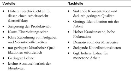 Vor Und Nachteile Arbeitsteilung