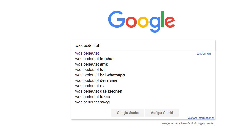 Die Abkürzung AMK steht für "Amina Koyim" Hierbei handelt es sich um einen türkischen Ausdruck Mein Abitur habe ich 19 am GeorgiusAgricolaGymnasium Chemnitz im vertieft sprachlichen Profil abgelegt Das heißt, dass ich einerseits die Spr Profil anzeigen Mélodie Ribes, 22 Deutsch Englisch Ausbildung. Das bedeutet aber auch, dass wir kein Geld für falsche Krankenhausabrechnungen ausgeben Was heißt Wallah in der Jugendsprache?. Diese Seite listet eine Auswahl von Abkürzungen und Akronymen aus dem Netzjargon, die im deutschen Sprachraum häufig in Chats, Instant Messengern, Diskussionsforen, EMails, SMS usw verwendet werden und von den meisten digital Natives und sonstigen Eingeweihten verstanden werden Oft stammen sie aus dem EnglischenAlle Abkürzungen können in der Schreibweise (vor allem in der Groß und.