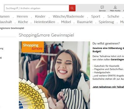 Teilnahmebedingungen OTTO Shopping & more Gewinnspiel 1 Veranstalter Veranstalter des Otto Shopping & more Gewinnspiels ist die Otto (GmbH & Co KG), WernerOttoStr 17, Hamburg (nachfolgend „OTTO“) 2 Teilnahme Teilnahmeberechtigt ist jede natürliche Person mit vollendetem 18 Lebensjahr und Wohnsitz in der Bundesrepublik. Wer 17 eine tolle Traumreise gewinnen möchte, hat bei diesem kostenlosen Otto Gewinnspiel mit Shopping & more eine tolle Gelegenheit dazu Verlost wird eine Traumreise im Wert von Euro Dazu gibt es noch einmal 5000 Euro Taschengeld Wenn Sie diese Traumreise gewinnen wollen, sollten Sie gleich jetzt an dem Otto Gewinnspiel teilnehmen und sich Ihre Chance sichern. Zusätzlich gibt es tolle Garantiegewinne zum abstauben!.