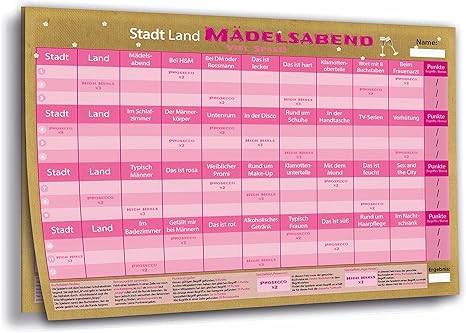 Kulinu Stadt Land Madelsabend Der Spieleklassiker Mit Reichlich Ostrogen Spieleblock Mit 34 Kreativen Kategorien Party Spiel Geschenk Idee Fur Frauen Zum Jga Oder Geburtstag Din Rosa Amazon De Spielzeug