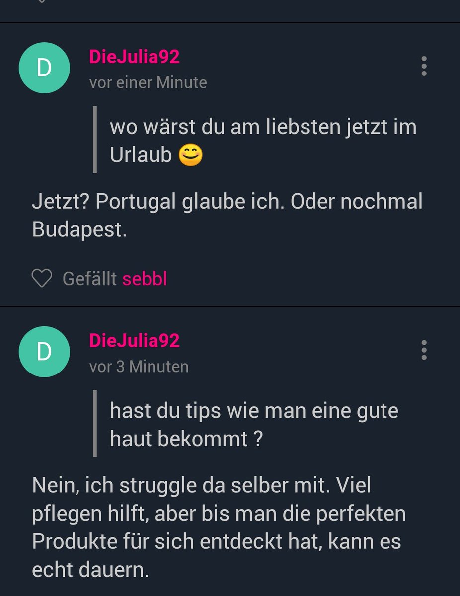 Liebe bedeutet für dich etwas Traditionelles Du magst nicht die ganze Verletzlichkeit, die mit dem Leben einhergeht und genauso wie du im Leben verantwortungsbewusst bist, wiegst du alles ab, bevor du dich in Bezug auf Herzensangelegenheiten jemandem hingibst. Welche Vorstellung von Liebe trage ich – wahrscheinlich unbewusst – in mir und was macht das mit meinem Beziehungen?. Ich habe über tellonym die Frage bekommen ,warum ich nicht mit Thomas (anderer Name) zusammen bin Ich glaube Thomas (mein Schwarm) hat diesen Tell selber geschrieben Er hat mir zwei e davor gebeichtet ,dass er mich liebt ich liebe ihn auch.