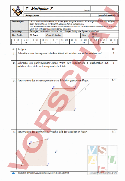 Geometrie Symmetrie Und Spiegelung Prufung 03 Ohne Formelsammlung Name Klasse Datum Punkte Note Klassenschnitt Maximalnote Pdf Free Download