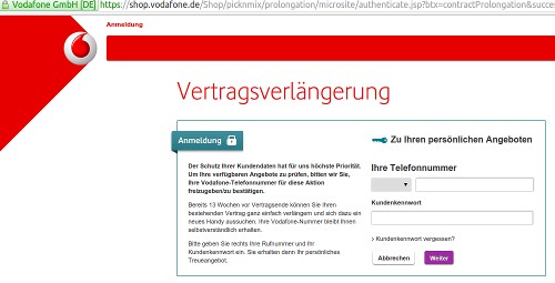 Wenn du Original Vodafone haben willst, und deine Rufnummer behalten möchtest, klappt das nur über RückholerAngebote. Einen Handyvertrag online zu verlängern, ist oft sinnvoller als die Vertragsverlängerung im normalen Mobilfunkshop zu veranlassen In der Regel wird ein Handyvertrag über 24 Monate abgeschlossen Wenn sich diese zwei Jahre dem Ende neigen, hat der Vertragsbesitzer die Möglichkeiten, je nach Zufriedenheit zu kündigen oder den Handyvertrag. VodafoneVertrag telefonisch verlängern Sie können Ihren Vertrag bei Vodafone auch telefonisch verlängern, oder aber Sie gehen direkt in eine VodafoneFiliale und lassen sich persönlich beraten Sie erreichen den VodafoneService kostenlos unter 12 12 aus dem deutschen VodafoneNetz oder ebenfalls kostenlos unter 0800 172 12 12 aus allen.