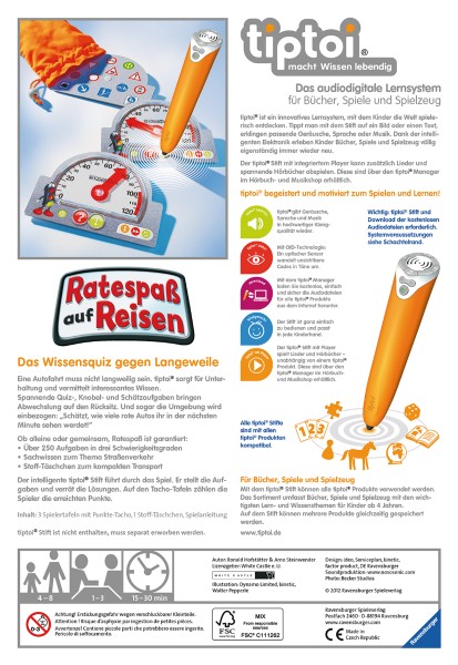Der tiptoi-Stift ist das zentrale Werkzeug für das gleichnamige Lern- und Kreativsystem von Ravensburger.Es beinhaltet verschiedene Bücher und Spielzeuge mit integriertem Feedback durch Audioinhalte.Diese lassen sich mit dem Stift über bestimmte Kontaktpunkte auf den Buchseiten aktivieren. Sie haben Retour-Kosten bezahlt?. Spiele mit integrierter Bewegung sind zum Beispiel von Haba „Gänsemarsch“ (6,95 Euro) und „Ratz-Fatz in Bewegung“ (39,95 Euro) oder von Ravensburger die „Dschungel-Olympiade“ für den.
