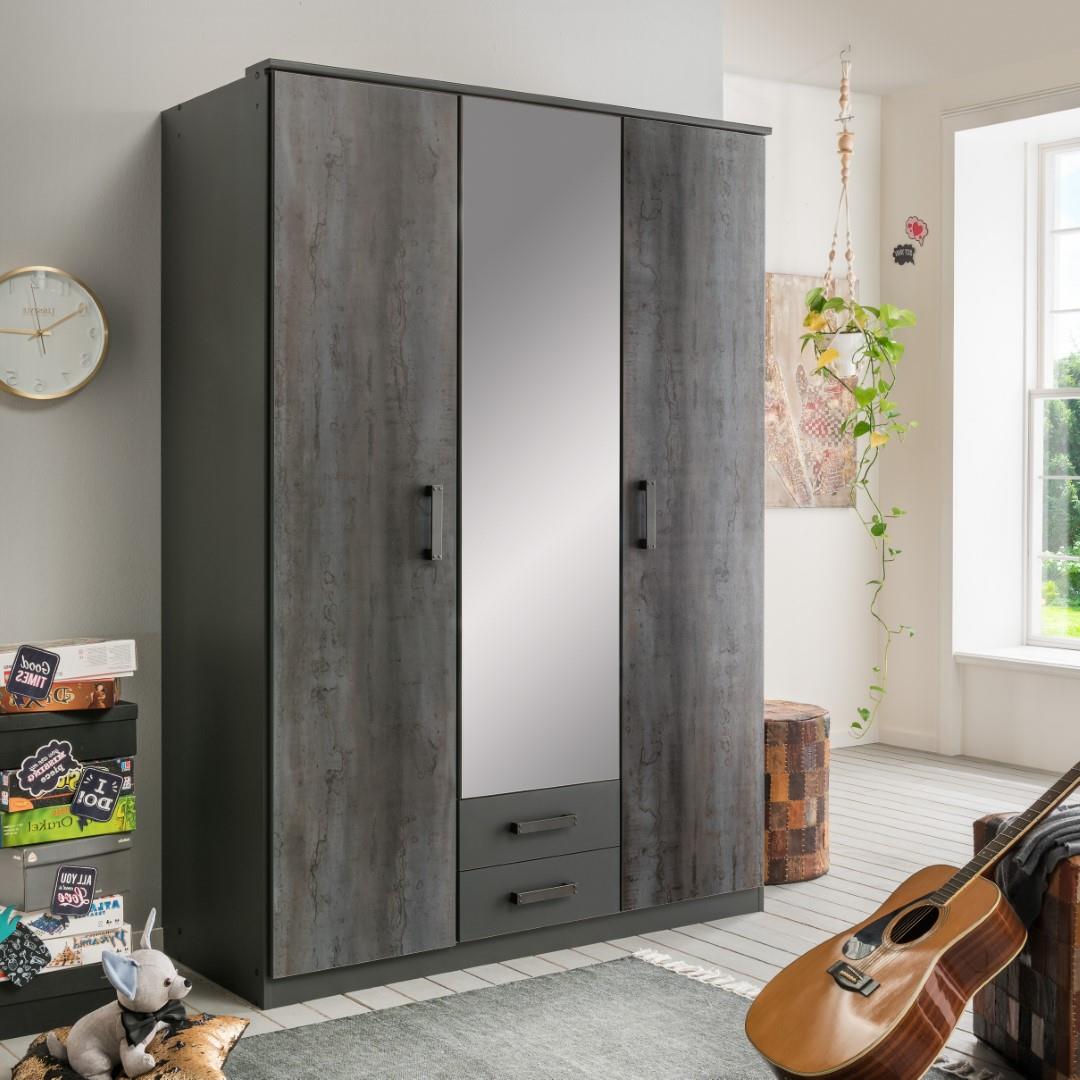 German Duisburg Steel Optic Grey Industrial 3 Door 2 Drawer Mirror Wardrobe Ebay