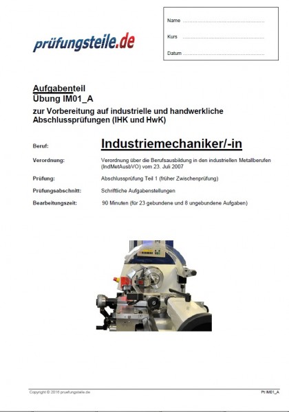 Pruefungsteile De Ihre Prufungsteile Fur Metallberufe Schriftliche Aufgabensatze Zur Ubung Industriemechaniker In Ap Teil 1 Herbst 16