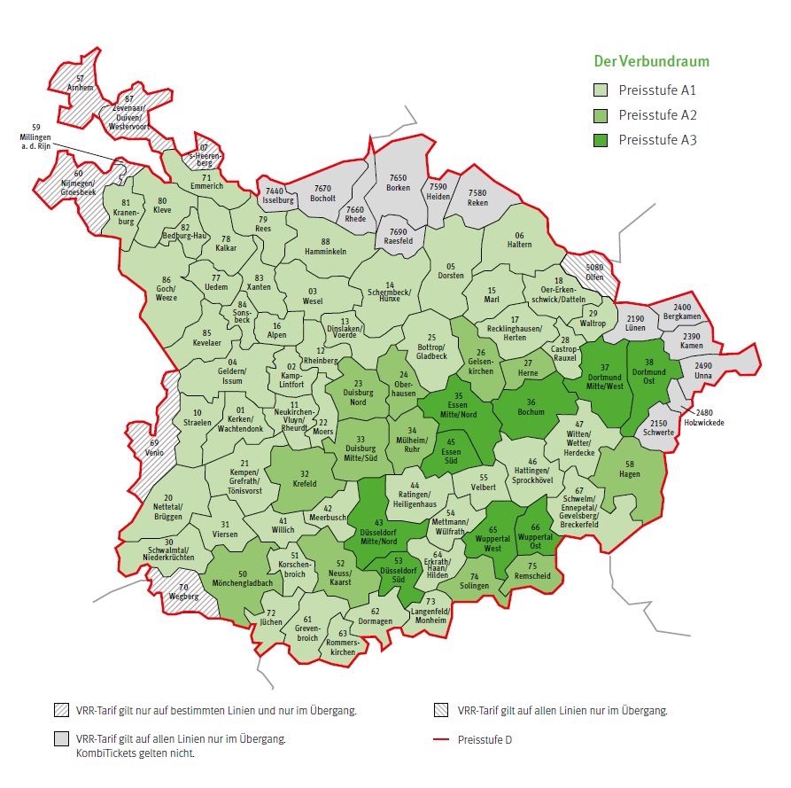 Tarifgebiete Regionen Preisstufen Verkehrsverbund Rhein Ruhr