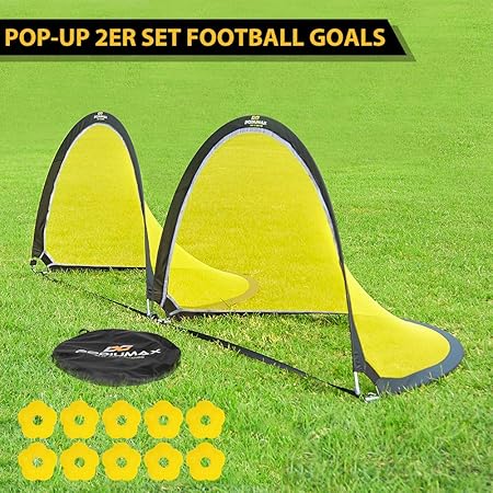 Podiumax Pop Up 2er Set Fussballtor 1 8m Breit Mit Bodenanker Reflektierenden Kanten Und 10 X Hutchen Tragbar Und Leicht Aufzustellen Amazon De Sport Freizeit