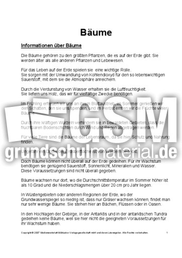 Baume Text Zur Prasentation Prasentationen Baume Lebensraum Wald Themen Und Projekte Hus Klasse 4 Grundschulmaterial De