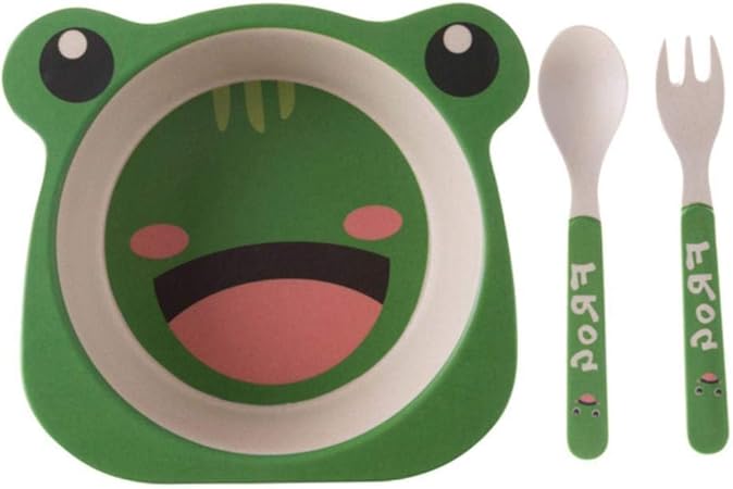 Xatakjj Bambusfaser Baby Karikatur Essen Geschirr Kinder Teller Kleinkind Futternapfe Kindertraining Bowl Loffel Gabel Frosch Amazon De Kuche Haushalt