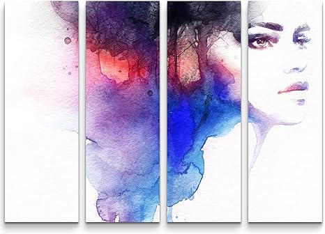 Paul Sinus Art Leinwandbilder Bilder Leinwand 130x90cm 4 Teile Wasserfarben Portrait Frau Amazon De Kuche Haushalt