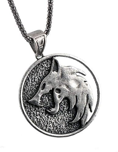 Nihiug Sorcerer 3 Peripheral Wolf Kopf Halskette Demon Hunter Wilde Jagd Abzeichen Witcher Hexe Anhanger Anhanger Hexe Medaille Silver Onesize Zubehor Verkleiden Kostume